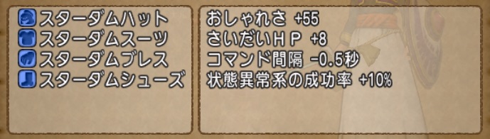 狙うのはスターダムセット一式。攻撃まりょくが高まるので、キラーパンサーの装備として人気ですね。中衛職がLV93付近の僕も、自分用にほしいところ。