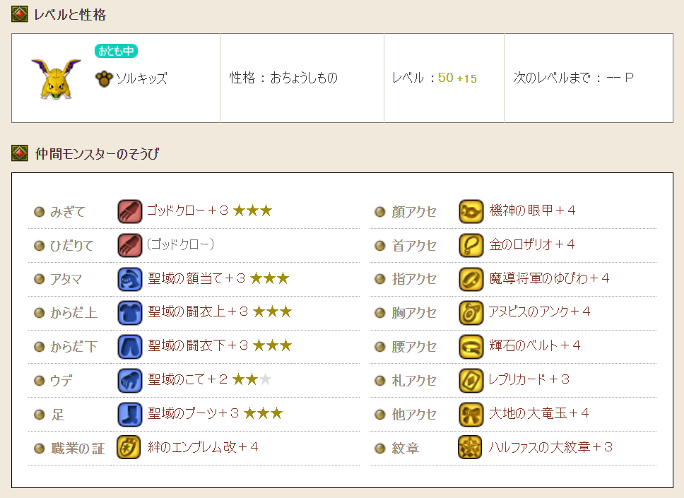 ただ、ドラゴンキッズなんてまじめに育てたことないので、装備はかなり間に合わせ品です。